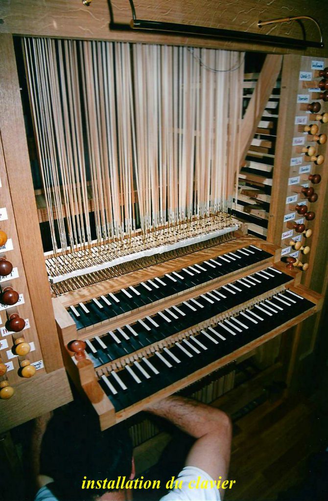 Les accouplements des claviers sont à tiroir pour GO et Positif et à fourchettes pour récit/GO.